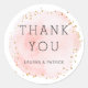 Este adesivo de agradecimento de casamento apresenta um círculo pintado em aquarela em rosa rosê com sotaques de pontos em dourado falso. Para personalização avançada deste design, clique no botão "Personalizar" para alterar fontes, tamanhos e cores. Itens correspondentes também estão disponíveis.