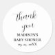 Adesivo Redondo Clássico de Agradecimento Personalizado de Chuvada de Bebê Branco