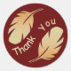 Este adesivo de agradecimento apresenta um desenho de pena em tons de amarelo pálido e marrom sobre um fundo vermelho profundo. O adesivo redondo exibe duas penas que curvam em torno da borda do adesivo. As palavras "obrigado" aparecem no centro e curvam seu caminho entre as penas. Este é um lindo adesivo de agradecimento em tons terrosos que é barato para manter à mão para uso multi-propósito. Tanto a cor do fundo quanto o "Obrigado" podem ser facilmente personalizados se desejar.