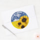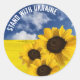 Adesivo Redondo Aguarde a Ucrânia em amarelo e azul com girassóis