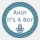 Adesivo Redondo Ahoy, é um Chá de fraldas de menino.