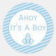 Adesivo Redondo Ahoy, é um Chá de fraldas de menino.