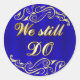 AINDA FAZEMOS adesivo de aniversário de casamento em azul real e dourado. Decoração clássica e texto 3D.
