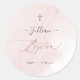 PixDezines adesivos de batismo, com álcool e tinta em cor-de-rosa pincelada com poeira falsa de ouro rosa e uma cruz de ouro falsa, destacada com roteiro de caligrafia de luxo. Todos os elementos editáveis e removíveis. Copyright © 2023 PixDezines™. Todos os direitos reservados.