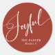 Estes elegantes e festivos autocolantes de Natal vermelhos dizem "alegre" na caligrafia moderna dos roteiros brancos.