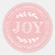 Adesivo de endereço de devolução redondo de Natal com o seu nome e endereço em tipografia branca estilosa, apresenta o texto ALEGRIA em tipografia manuscrita com um toque estiloso de folhagem rústica em um fundo rosa. Basta adicionar o seu nome e endereço. Exclusivamente projetado para você pelo Happy Dolphin Studio. Se precisar de ajuda ou produtos correspondentes, entre em contato conosco através do nosso chat de loja. Boas festas e Feliz Natal!