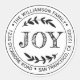 Adesivo de retorno redondo de Natal com nome e endereço em tipografia preta estilosa apresenta o texto ALEGRIA em tipografia manuscrita com um toque estiloso de folhagem rústica. Basta adicionar seu nome e endereço. Exclusivamente projetado para você pelo Happy Dolphin Studio. Se precisar de ajuda ou produtos correspondentes, entre em contato conosco através do nosso chat de loja. Boas festas e Feliz Natal!