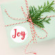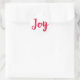 Adesivos de feriado apresentam texto "Alegría" em escrita riscada vermelha com fundo branco.