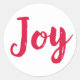 Adesivos de feriado apresentam texto "Alegria" em rosto escovado vermelho com fundo branco.