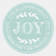 Adesivo de endereço de retorno redondo de Natal com o seu nome e endereço em tipografia branca estilosa, apresenta o texto ALEGRIA em tipografia manuscrita com um toque estiloso de folhagem rústica em um fundo azul pastel. Basta adicionar o seu nome e endereço. Exclusivamente projetado para você pelo Happy Dolphin Studio. Se precisar de ajuda ou produtos correspondentes, entre em contato conosco através do nosso chat de loja. Boas festas e Feliz Natal!