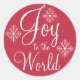 Um esquema de cor vermelha e flocos de neve decoram esta Alegria aos adesivos do Mundo. Use estes adesivos de na moda para Natal, envelopes, presentes, assar, cozinha, troca de biscoitos, etiquetas de presentes, artesanatos, etc.O design é da arte original.