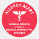 Alergia Alerta Médico com o nome das pessoas e lista de alergias em vermelho e branco alerta com o símbolo médico.