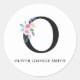 ADESIVO REDONDO ALFABETES FLORAIS AZUIS SUAVES LETRA O