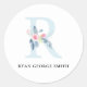 ADESIVO REDONDO ALFABETES FLORAIS AZUIS SUAVES LETRA R