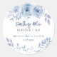 Crie um Adesivo Redondo Clássico de Chuve de Noiva em Azul Empoeirado Moderno com este modelo fofo que apresenta um lindo buquê floral rústico com tipografia simples moderna. DICA: Cartões de suite de casamento, como RSVP, programas de casamento, faixas, tapeçarias, etiquetas de presente, placas e outras lembranças e guloseimas de casamento estão disponíveis na coleção abaixo com este design.
