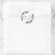 Projetado para combinar com nossa coleção "Algo Azul", os adesivos redondos apresentam suas iniciais ou monograma e data de casamento em uma elegante cinza azul com destaque para o roteiro de caligrafia com letra manual. Tristeado por flores em azul, azul empoeirado, marfim e penas escuras, esta design é perfeita para o casamento estilo boho.