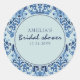 Adesivo moderno de festa de noivado em aquarela apresenta padrão Chinoiserie em azul e branco. Ótimo para festa de noivado moderna clássica, vintage e formal. Explore a coleção completa para itens correspondentes. Clique no botão de edição para personalizar ainda mais este design.