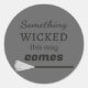 Design de Halloween, perfeito para quem gosta de bruxas. "Algo malvado assim vem" Shakespeare cita sobre um fundo de cinza. Arte assustadora para enfatizar seu estilo e espaço durante a temporada de Halloween!