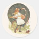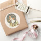 Um adesivo redondo com a imagem da Alice no País das Maravilhas de Alice e do flamingo. Veja confetti correspondente, bolsa de favor, etiqueta de favor quadrado rico, etiqueta e papel de embalagem. Veja toda a coleção Wonderland Sticker nos CONVITES | Seção Stickers & Labels