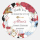 Personalize estes adesivos redondos caprichosos da Festa do Chá da Alice no País das Maravilhas fácil e rapidamente, basta pressionar o botão Editar Usando Ferramentas de Design para reorganizar e formatar o estilo e a colocação do texto. (c) The Happy Cat Studio.