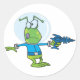 Adesivo Redondo Alienígena engraçada com Ray Gun Sci-Fi Invader