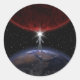 Alienígena de cinzas mostrada entre a Terra e um planeta como Marte.