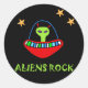 Os aliens rOcK! é um design de trabalho de arte com uma alienígena de kEwL flutuando entre as estrelas. Esta pequena cara do espaço exterior parece kEwL em um adesivo!