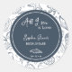 These All I Sea Is Love Navy Blue Seashells Doodles Classic Round Stickers feature a deep navy background decorated with whimsical doodles of seashells, starfish, hearts, and sparkles, creating a bold and elegant seaside look. Centered on the sticker is a solid navy circle outlined with a thin white inner ring that frames your customizable text. Inside the circle, “All I Sea Is Love” stands at the top, followed by a space to add the bride’s name, “Bridal Shower,” a seashell motif, and the event date. Perfect for favor bags, gift tags, envelope seals, and party accents, all colors and wording can be edited to match your theme.