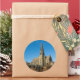 A high-resolution view of the Grade II listed All Saints Church in Salterhebble, West Yorkshire. The image captures the church’s impressive Gothic Revival spire and detailed stonework from the perspective of the historic graveyard. Framed by silhouetted tree branches against a crisp blue sky, the late afternoon sun illuminates the weathered textures of the sandstone, highlighting the architectural heritage of the Calderdale region.