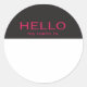 Um adesivo circular redondo com a redação tradicional "Olá, meu nome é" em cor rosa quente a preto para uma introdução única e divertida. Solicite uma variedade de adesivos 'olá único meu nome é' nesta loja e deixe que o pessoas no seu evento escolha o estilo deles. Ou escolha uma que corresponda ao seu tema de evento.