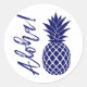 Adesivo Redondo Aloha Pineapple Beach Weding Luau | marinho branco