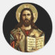 Imagem vintage, de cor rica, de Jesus, oferecendo benção e segurando uma Bíblia aberta.