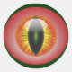 Este adesivo é embelezado com uma ilustração do globo ocular vermelho sangrento de um monstro com uma íris laranja e amarela e um alvéolo cortado de um réptil ou gato.