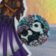 Adesivo Redondo Amantes de Flores Roxas de Urso Panda