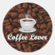 Adesivo Redondo Amassado de café, taça branca/feijão castanho