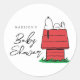 Adicione um toque lúdico ao seu chá de fraldas com o Chá de fraldas Clássico redondo de salgadinhos de porco noopy! Apresentando Snoopy na sua casa de cachorro, este encantador adesivo é perfeito para decorar favoritos para festas, convites ou bolsas de goela no seu chá de fraldas temático de amendoins. Deixe Snoopy trazer mais alegria e charme para sua celebração!
