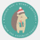 Adicione um toque único aos envelopes de férias com nossos adesivos de férias dos Amigos de inverno. Os autocolantes festivos apresentam um ouriço bonito e cartoon vestindo um chapéu de inverno e segurando um presente com sua saudação personalizada e o nome da família junto com o adesivo contra um fundo verde teal.