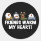 Três homens de neve e uma rena adoram esses bonitos autocolantes de férias, ímãs, cartões de saudação, T-shirts e outros itens e o texto lê "Amigos Querem Meu Coração!". Estas T-shirts de férias e outros artigos são perfeitos para todo o inverno, não só para o Natal!