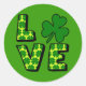 Adesivo Redondo AMOR com Shamrocks Verdes e Amarelo