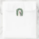 Inclui 20 pequenos adesivos numa única folha. Ilustração romântica de um casal compartilhando um beijo sob um arco floral, perfeito para decoração de casamento ou para compartilhar com entes queridos.