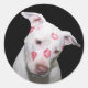 Adesivo Redondo Amor de Cachorro Branco, Selado com Brisos Lábios