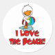 Um pato branco com uma bola de praia colorida e o texto que me lê "amam a praia!" é caracterizado neste camiseta do tema do pato de verão, canecas, mousepads, as bolsas, botões, e mais!