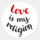 O amor é a minha religião. Placa de dia de os namorados. Citação de escrita manual vetorial | Bigstock® - Todos os direitos reservados.