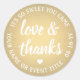 Adesivo Redondo Amor e Obrigados Dourados Folha Simples