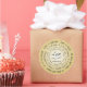 Adoro texto favorável a etiqueta adesiva. A escritura de casamento do primeiro Corinthians 13 é impressa em forma circular em texto preto sobre fundo dourado / bege. Texto "O amor nunca falha" no centro. Também parece bem no autocolante quadrado. Maior, o tamanho de 3 polegadas é melhor ou o texto será muito pequeno.