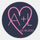 Adesivo Redondo Amor Elétrico Coração Rosa Neon e Monograma