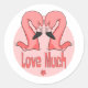 Adesivo Redondo Amor muito Kawaii belos dois flamingos rosa