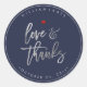 Adesivo Redondo Amor+Obrigado, Moderno Script Prata+Azul-Marinho