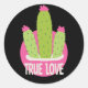 Adesivo Redondo Amor verdadeiro Kawaii cactus verde e rosa