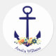 Âncora náutica azul com design de buquê de de flores em fundo branco. O nome e a cor de fundo são editáveis.